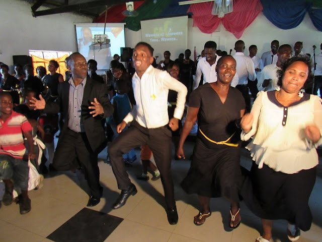 Mchungaji Dkt.Daniel Moses Kulola (mwenye suti) akiungana na waumini wengine kumsifu Mungu kwa roho na kweli.
