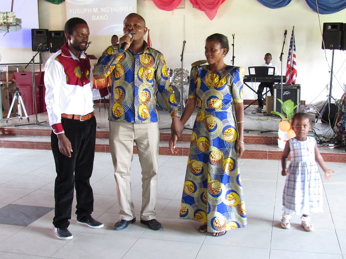 Wa pili kushoto ni mwimbaji wa nyimbo za injili hususani za kusifu na kuabudu, Yusuph Nghumba, akiimba katika tamasha hilo. Wa pili kulia ni mkewe na wa kwanza kushoto ni mmoja wa watoto wao. Wa kwanza kushoto ni Mwenyekiti wa Vijana kanisa la EAGT Lumala Mpya ambaye pia ni mwimbaji mahiri wa kusifu na kuabudu.