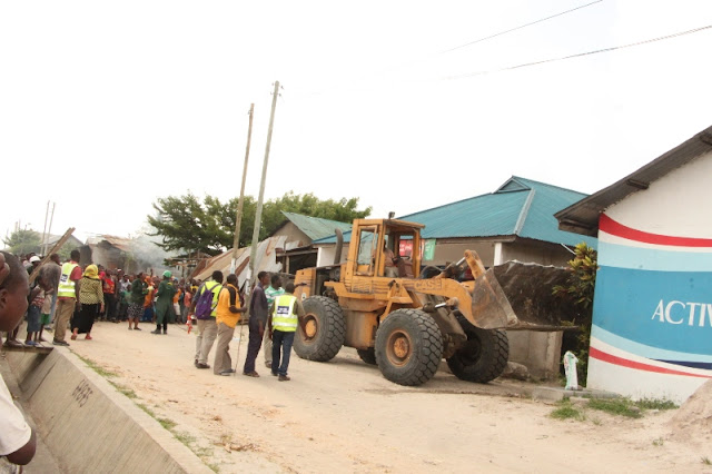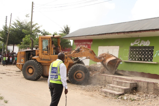 Ofisa wa Tanroad akisimamia ubomoaji huo.