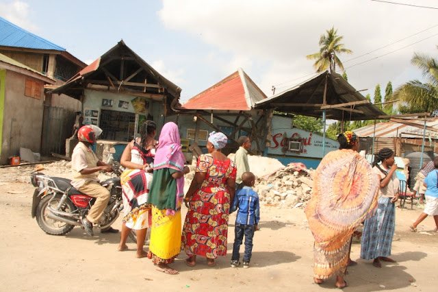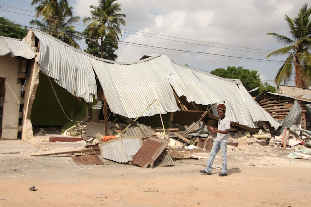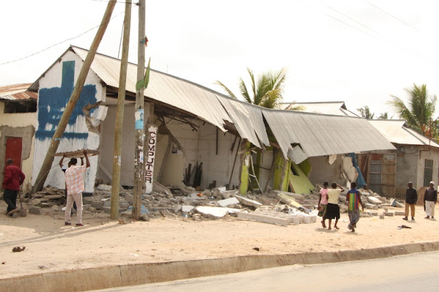 Wananchi wakiangalia moja ya Baa iliyobomolewa.
