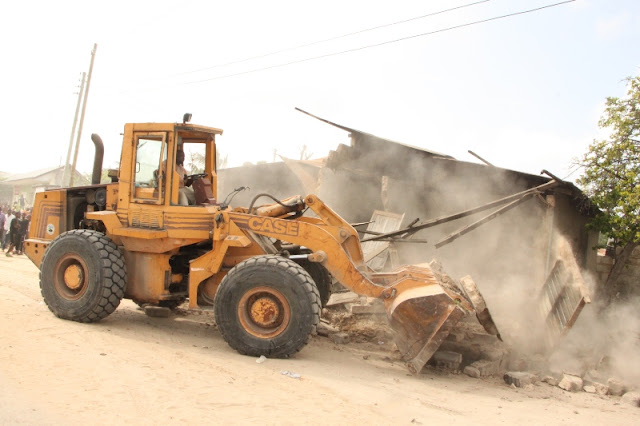 Wananchi wakiangalia ubomoaji huo.