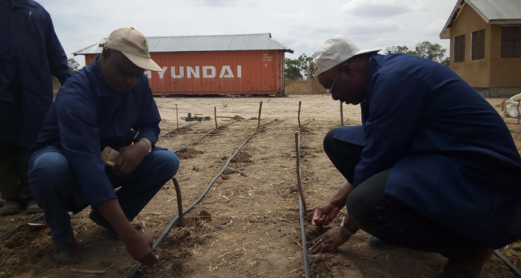 Mshauri wa Mradi wa WEMA, Dk. Alois Kullaya  (kushoto) na Meneja mradi huo Mr  Silvester  wakishiriki kwenye upandaji wa mbegu hizo.