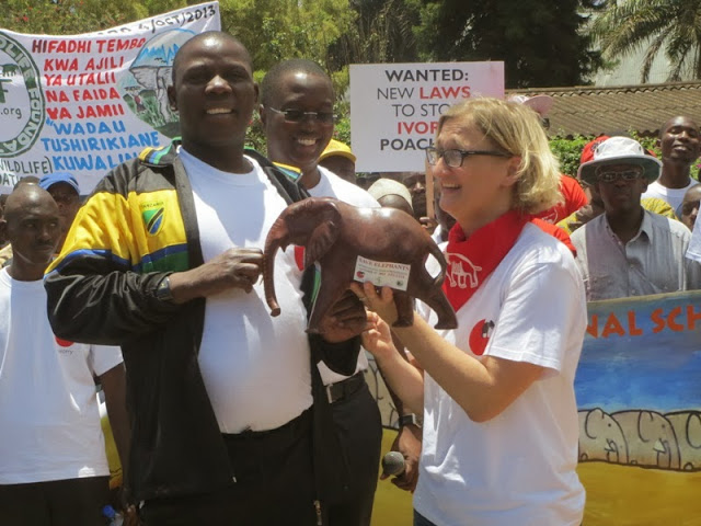 Muheshimiwa Waziri wa Maliasili na Utalii Kahasheki akizungumza na wanaharakati waliofika katika siku ya Matembezi ya Tembo Duniani, kwa kutoa Salamu kutoka kwa Muheshimiwa Rais Kikwete kwamba Oparesheni ta kutokomeza majangili imeanza na Haitasimama, alisisitiza kwamba Wanasheria wafunge midomo yao kuhusu kutetea haki za binadamu , Aliongeza kwamba majangili wauwawe huko huko wakikamatwa kurahisisha msongamano wa kesi mahakamani, na Mwisho aliongeza kwamba Wanasiasa wasiingilie swala hili la kupambana na ujangili.