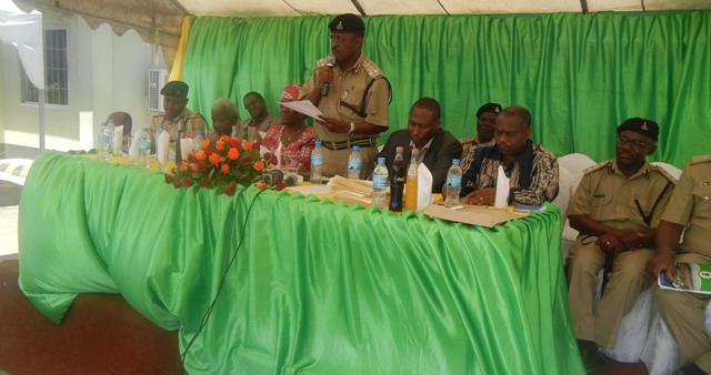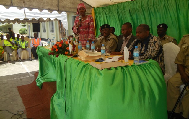 Kamanda Mpinga akiongea na wahitimu, L to R ACP Missime RPC Temeke, Yakub Rajab TDA, Mkurugenzimanispaa temeke, M/kiti Bodi ya ushauri, Mkuu wa chuo cha VETA, ACP Kahatano Traffic Kuu.