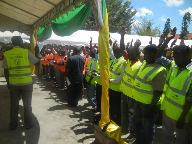 Wahitimu wa mafunzo ya uendeshaji boda bodawakifuatilia kwa makini yaliyokuwa yakijiri kwenye hafla hiyo.