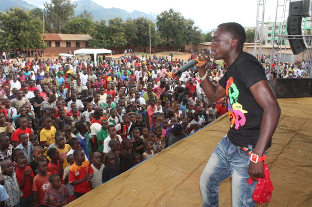 Mshiriki wa muziki wa hip hop, akionyesha makali yake ya kuchana wakati wa shindano la Shindano la Moro Carnival lililofanyika uwanja wa sabasaba mjini Morogoro.