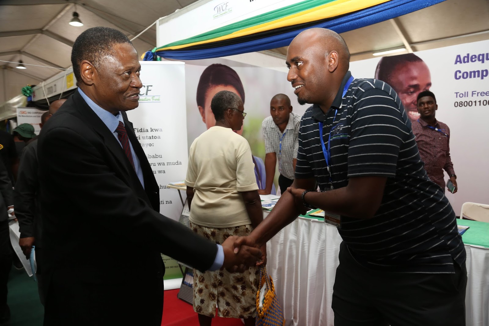 Wakati hyuo huo, Waziri anayehusika na sekta ya Viwanda na Biashara, sekta ambayo inatoa ajira kubwa kwa wafanyakazi, naye alipata fursa ya kutembelea banda hilo ambapo kama ilivyokuwa kwa Kaimu Jaji Mkuu naye alielezwa majukumu yanayotekelezwa na Mfuko ambapo Afisa Uhusiano Mwandamizi wa Mfuko huo Bw. Sebera Fulgence, alimueleza kuwa sekta ya viwanda na biashara ni miongoni mwa sekta zinazotoa wanachama wengi kwenye Mfuko huo, ukiachilia elimu na afya na kwamba Mfuko umekuwa ukiendelea kutoa elimu zaidi kwa waajiri kuhusu umuhimu wa kuchangia wafanyakazi wao kwa manufaa ya mwajiri na mwajiriwa pindi yanapotokea madhara. Mfuko wa WCF ni Taasisi ya Hifadhi ya Jamii iliyoundwa kwa mujibu wa kifungu cha 5 cha sheria ya Fidia kwa Wafanyakazi (sura 263 marejeo ya mwaka 2015).